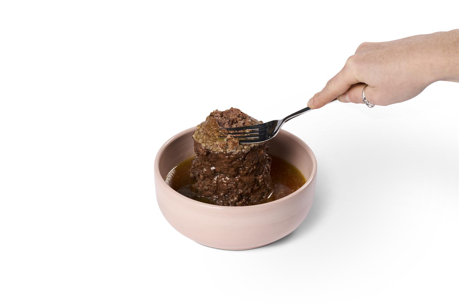 Schütten Sie den gesamten Inhalt in ein Gefäss, vermengen Sie die Flüssigkeit gründlich mit dem Fleischkern und portionieren Sie anschliessend die gewünschte Menge für Ihren Liebling.