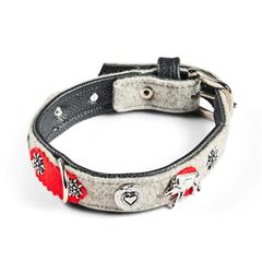 Unser Halsband Dänemark aus Filz und Leder ist äusserst schonend am Hals des Hundes. Es wurde sorgfältig von Hand mit Schmucksteinen verziert.