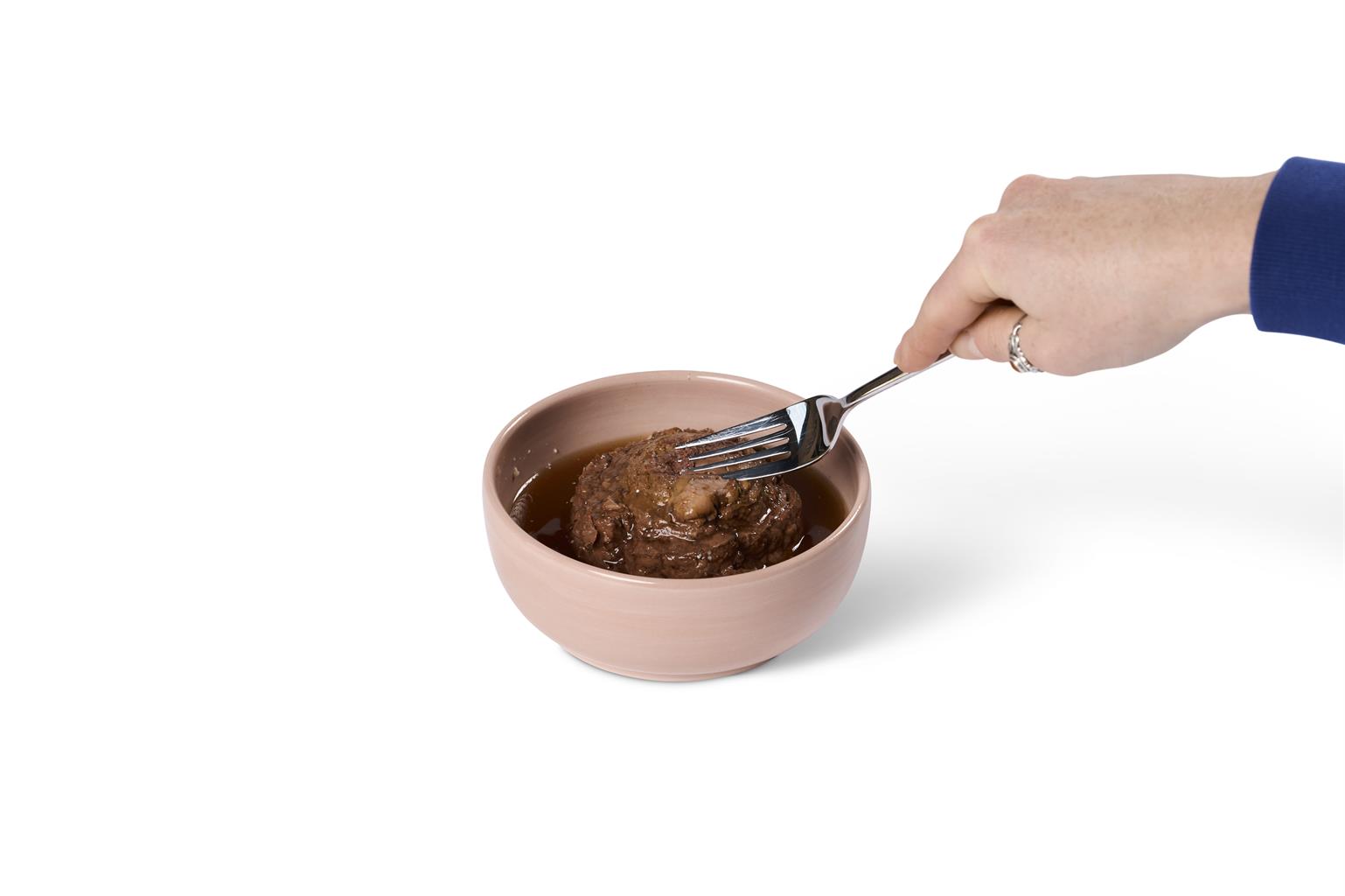 Versez tout le contenu dans un récipient, mélangez soigneusement le liquide avec le noyau de viande, puis préparez la portion souhaitée pour votre animal.